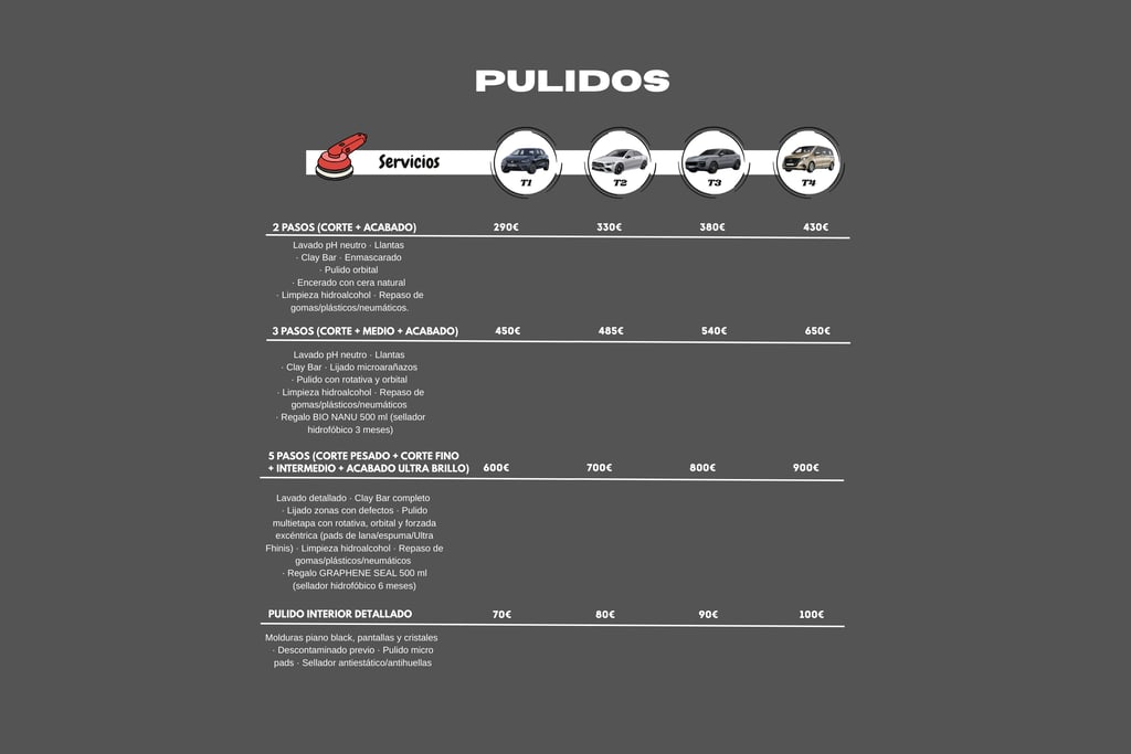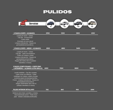 5 Pasos (Corte pesado+ corte fino+intermedio+ acabado ultra brillo